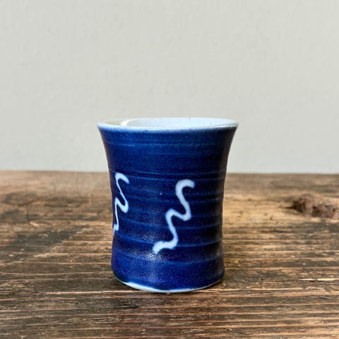 Lille keramik skål med blå og hvide striber