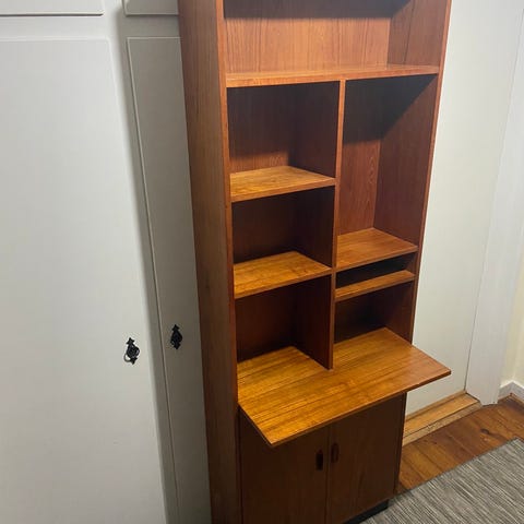 Skab- vitriner teaktræ , vitriner kan adskilles I to dele , brugt
