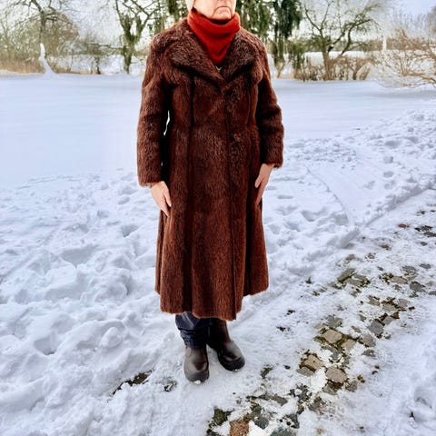 Pelsfrakke lang brun dame one size