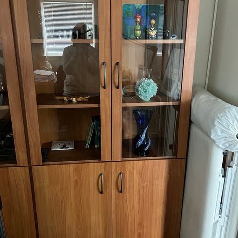 Teaktræ.Vitrine- skab kan adskilles I to dele, brugt