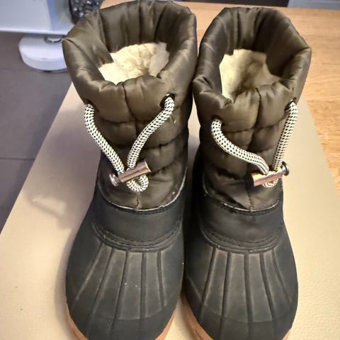 Angulus børnestøvler i størrelse 33 til unisex. Støvlerne er sorte med lyse snørebånd og kraftig, mønstret ydersål. Indersiden fremstår foret, hvilket kan give ekstra varme. Egnet som hverdagssko eller til udendørs brug i køligere vejr for børn i den angivne skostørrelse.