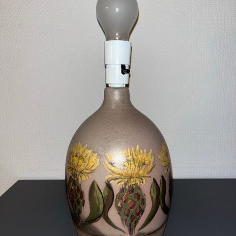 Særdeles flot vintage bordlampe i smukt håndlavet stentøj - rå keramik fra svenske Töreboda Keramik