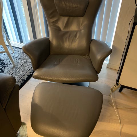 Oslo lænestol med sædeløft i okselæder og egetræ. Hjort Knudsen stol.
