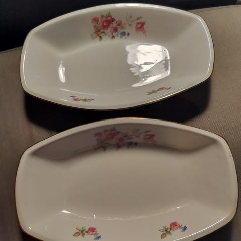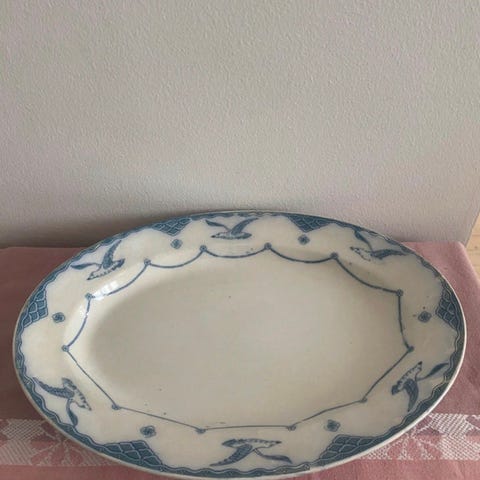 Flot serveringsfad fra stellet "Maj" produceret af Gustavsberg med Margareta svenske sommerblomster.