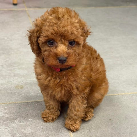 Faren er en rød (Red) Toy Poodle, som ligeledes har fuld genetisk sundhedstest.