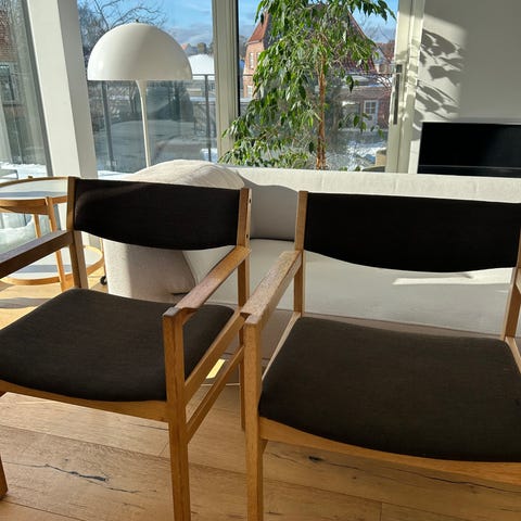FDB Møblers J178 Lønstrup spisebordsstole i lakeret eg. Vi har 2 stk til salg som begge er i rigtig fin stand, dog kan mindre kosmetiske fejl forekomme.