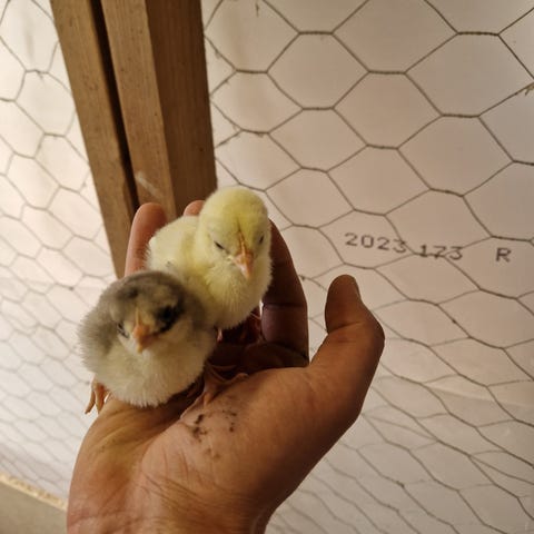 Er kyllingerne til skrukhøne, anbefaler jeg at man først henter dem, når det er blevet mørkt - eller hvert fald først giver hende dem, når det er mørkt - og altid sneget ind under hende bagfra - så hønemor ikke "opdager dem". Herunder anbefaler jeg også, at man har en varmelampe eller varmeplade i reserve, hvis hønemor ikke vil have dem.