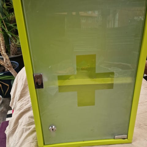 Medicinskab. Væghængt skab i stål med spejlblank overflade. Bagsiden har huller til vægmontering.