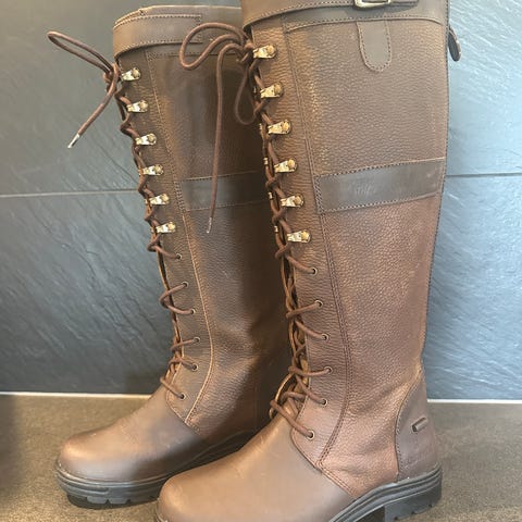 Dubarry Galway goretex støvler i brunt læder. Højskaftede støvler med snøre øverst på skaftet og kraftig, mønstret gummisål. Velegnet som udendørs- og fritidsstøvler. Dame model i klassisk brun farve med karakteristiske Dubarry-detaljer på skaftet.