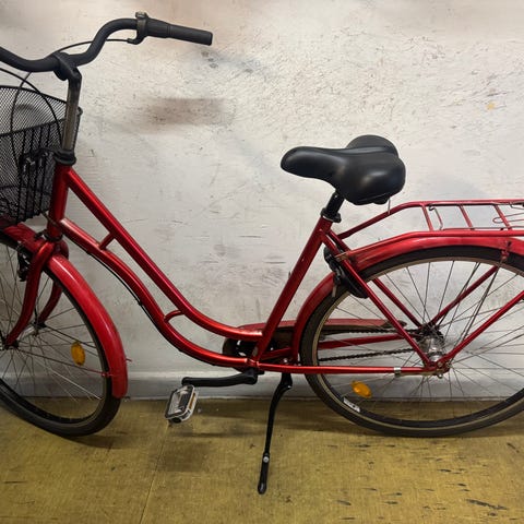 Cyklen har lige fået service og blev justeret og ordnet grundigt og i den forbindelse har den fået en ny forsikrings godkendt lås, en ny kæde og et sæt nye bremseklodser.