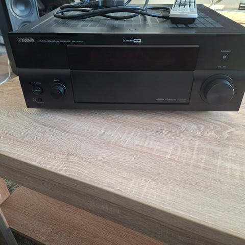 Yamaha forstærker med 2 sorte højttalere og Sub.