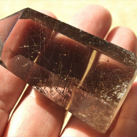Røgkvarts skull, fra Brasilien. Med smukke regnbuer.
