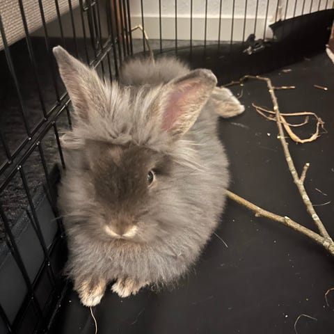 Topher er 3 år gammel og han er en blanding af løvehovede og dværgvedder, han er kastreret og renlig. Jeg har aldrig oplevet at han har bidt, og han er utrolig kærlig, social og legesyg. Han har mistet lidt af sin pels, men den vokser heldigvis tilbage. Det er vigtigt for os, at han kommer til et hjem, hvor han får meget opmærksomhed og kærlighed, og hvor der gerne kan være en anden kanin som selskab ellers skal han få nok opmærksomhed af den nye ejer. Han skal ikke være i bur og han er indekanin, så det er vigtigt han forbliver indendørs og er free roam 24/7 (hvis det er for hans sikkerhed er det selvfølgelig undtaget).