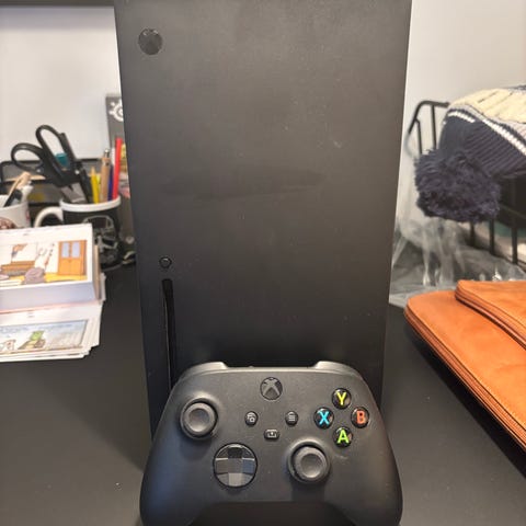 Xbox Series X 1 TB sort, brugt minimalt da min søn ikke er til gaming. Der medfølger original controller, gaming tastatur samt mus.