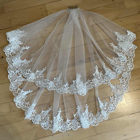 2-lags brudeslør med rhinesten langs kanterne. Nyt