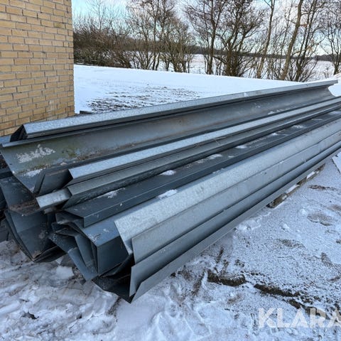 Triplan galvaniseret U-stålprofil. Gipsstål. 35 kr. pr meter.