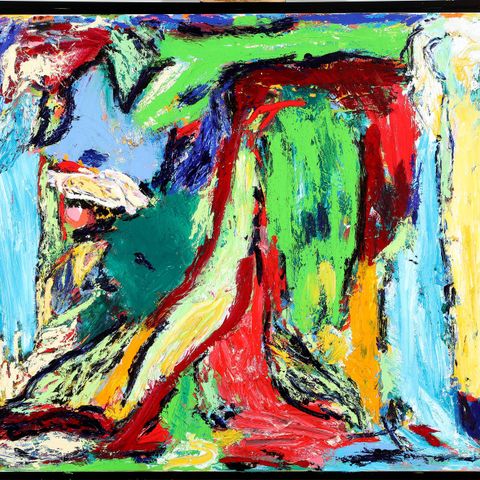 John Reuss Room with a View maleri på lærred. Kvadratisk lærred opspændt på blindramme med ophængswire bagpå. Motivet er et abstrakt, figurativt motiv i grålige nuancer med indslag af blå, røde og lyserøde felter. På siden af rammen sidder en etiket med kunstnernavn og titel. Velegnet til ophængning i stue, kontor eller andre opholdsrum.