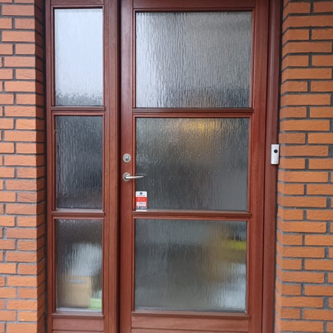 Mahogni facadør med 3 punktslås. 1 nøgle medfølger.