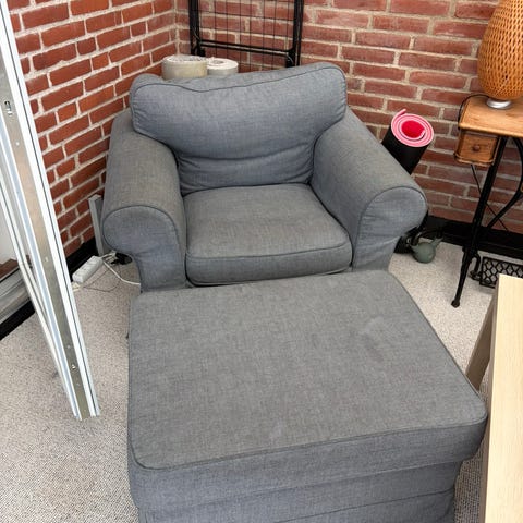 Grå lænestol, god til middags lur og meditation. Sælges grundet flytning.