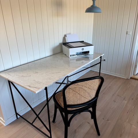 White table with grey marble top. 75x75x75cm
