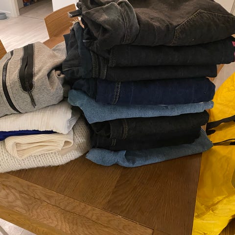 Fin og stor tøjpakke til teenager eller mindre kvinde. Tøjet er gennemgået og det synes ingen huller eller pletter.
