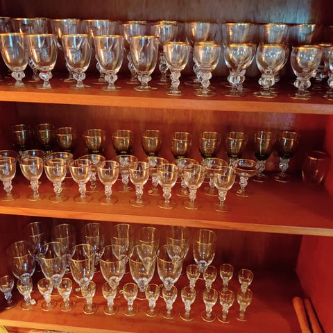 7 rødvins krystal glas vintage sælges samlet. 5 er i fin stand 2 har lettere glas pest. Det sidste billede er dr to glas med glas pest H 20 cm Ø 9 cm kan godt sendes