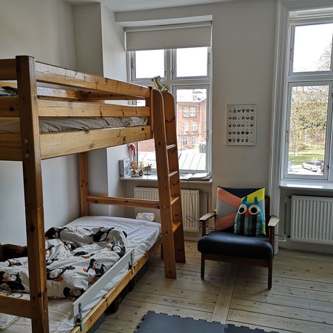 Sander scandinavia køjeseng. Godt brugt, men fuldt funktionel. Afslag på træet. Er skilt ad.