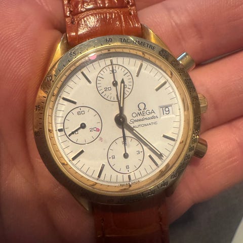 Omega herreur kronograf guld ur med brun læderrem