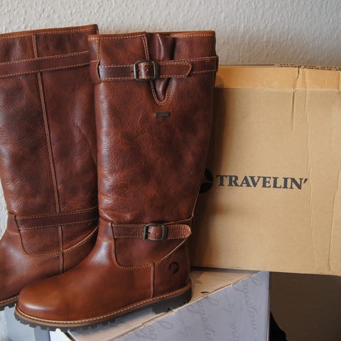 Vandrestøvler i størrelse 40. Støvlerne er sorte med lys polstret inderside og kraftig ydersål med markant mønster, egnet til koldt og glat underlag. Overdelen fremstår i læder med snørelukning og forstærkninger omkring hæl og tå. Indersålen er let polstret for øget komfort. Velegnet som robuste vinterstøvler til hverdagsbrug og udendørsaktiviteter.