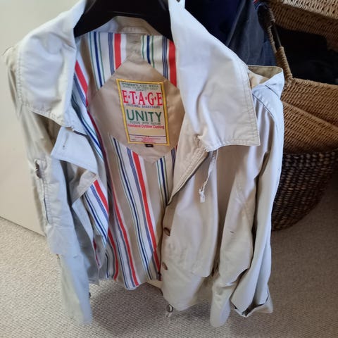 Part Two jakke fra foråret 2025. Jakken lukkes med lynlås i front og med yderligere 5 knapper. Der er to store stiklommer med knapper over + 2 store indvendige lommer. Der er hætte med snørebånd. Ærmerne kan lukkes med trykknapper i to positioner