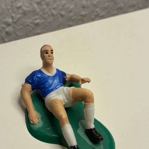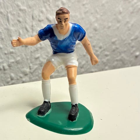 Figur fodbold håndbold fodboldspiller håndboldspiller dreng mand i rød bluse og hvide shorts her i en glidende tackling