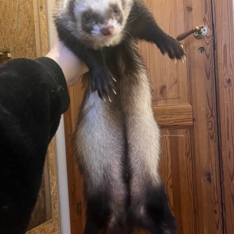 Der medfølger snor, halsbånd med klokke og en hængekøje til hende.