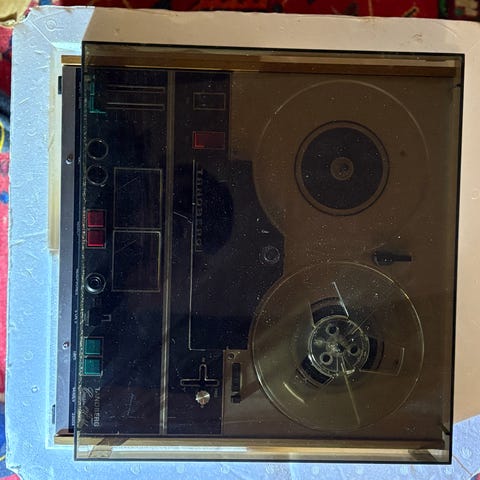 Palisander kabinet velholdt indbygget stereoforstærker, med 2 gode højtalere i siden.