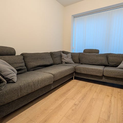 Ingen pletter, skjolder eller fejl. Fra røg og dyrefrit hjem. Sælges pga af den "vender forkert" i vores nye hjem - (kan ikke spejlvendes) de sidste 2 billeder for at vise stoffet/strukturen i stoffet