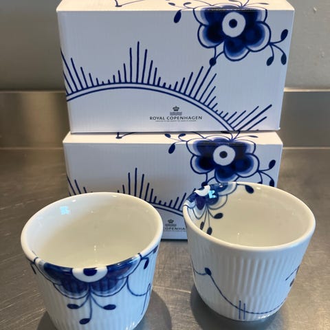 Royal Copenhagen termokrus / termokopper. 26 cl. Blå mega riflet og Blueline. Brugt få gange og er i meget pæn stand. 1. sortering uden brudgaranti. Vejl. butikspris kr. 1.048. Samlet pris.