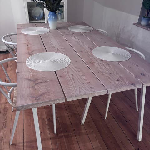 Plankebord i fyrretræ + 4 Nava spisebordsstole