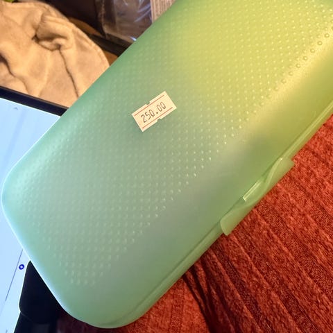 Tupperware Madkassesæt plast blå grøn orange