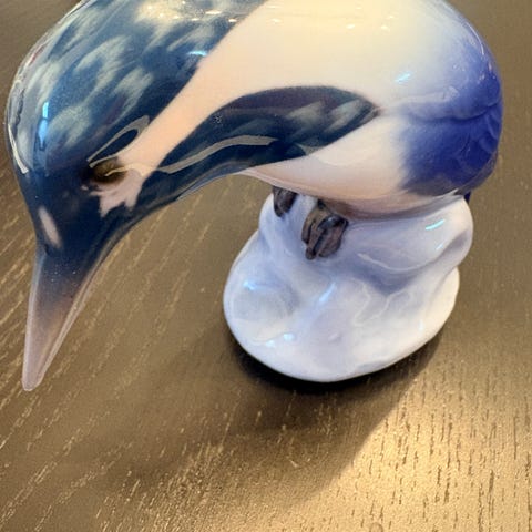 Bing & Grøndahl porcelænsfigur af siddende fisker. Figuren forestiller en mand i regntøj og hat, siddende på en sten. Undersiden er mærket med Bing & Grøndahl stempel og modelnummer 2370. Velegnet som dekorativ figur i hjemmet eller som supplement til en samling af B&G figurer.