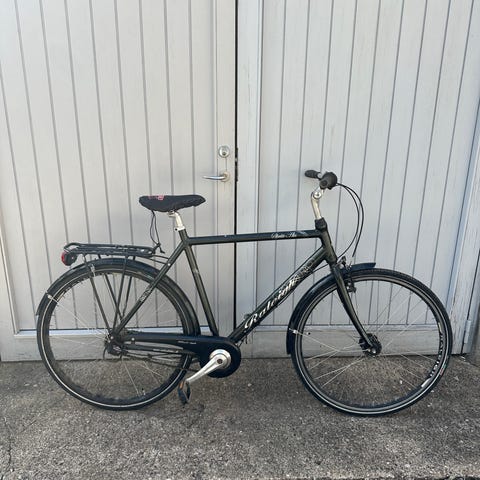 Solid dagligcykel med skærme for og bag, vandflaskeholder og god geometri.