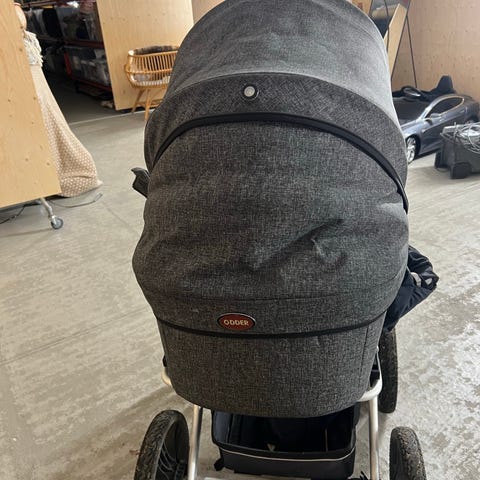Tilbehør: lift (ikke Odderl), fuld regnslag, (brio) fluenet, sele, originalt indkøbsnet (det gode) varekurv, skummadras, madras betræk, fugtspærre, lagen (misfarvet af sol) med mere. Se alle billeder.