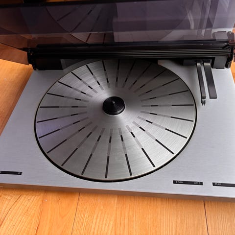Nålearmen er snorlige (se billede), og ophænget er stramt og sundt, hvilket giver perfekt frihøjde over pladen.