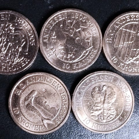 Disse mønter blev udgivet i erindring om H.C. Andersens 200 års fødselsdag.