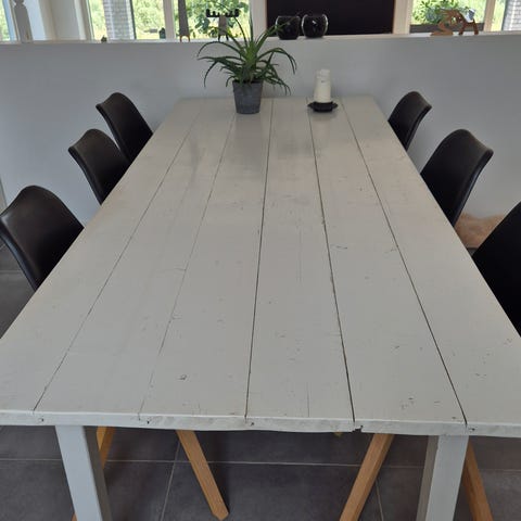 Charmerende rustikt hvidt robust spisebord fremstår nymalet- oprindeligt fra Ilva…