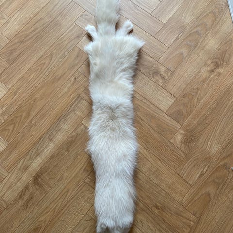 Farvet ræv med klemme i snuden så den kan bide sig i halen som lukning