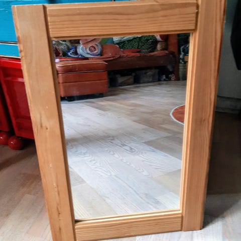 Retro Træ spejl med lille hylde