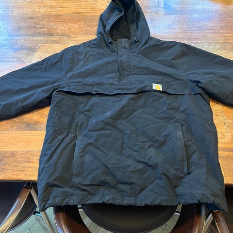 Carhartt jakke til mænd i størrelse XS. Jakken er sort og fremstillet i polyester. Modellen har hætte og lange ærmer, som på billederne. Velegnet som overtøj til hverdagsbrug og udendørsaktiviteter.