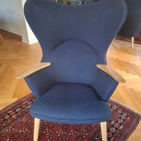 Carl Hansen, Hans J. Wegner, Mama Bear lænestol i mørkt KVADRAT stof og egetræ
