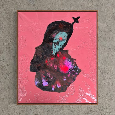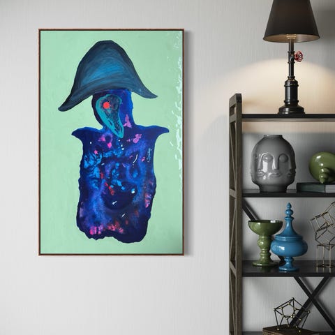 Akrylmaleri, Akryl på lærred sælges med brun massiv egetræ ramme