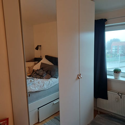 Sælges da vi flytter i hus, hvor der er indbygget skabe.