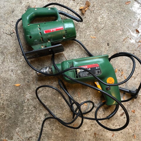 . Dette Bosch batteridrevne elværktøjssæt indeholder en boremaskine/skruetrækker, en bajonetsav og en rundsav. Sættet indeholder tre batterier og en batterioplader, der er kompatibel med de værktøjer, der er vist på billederne. 1000kr pris for alle sammen og alt virker perfekt🌪️👌💪🏻